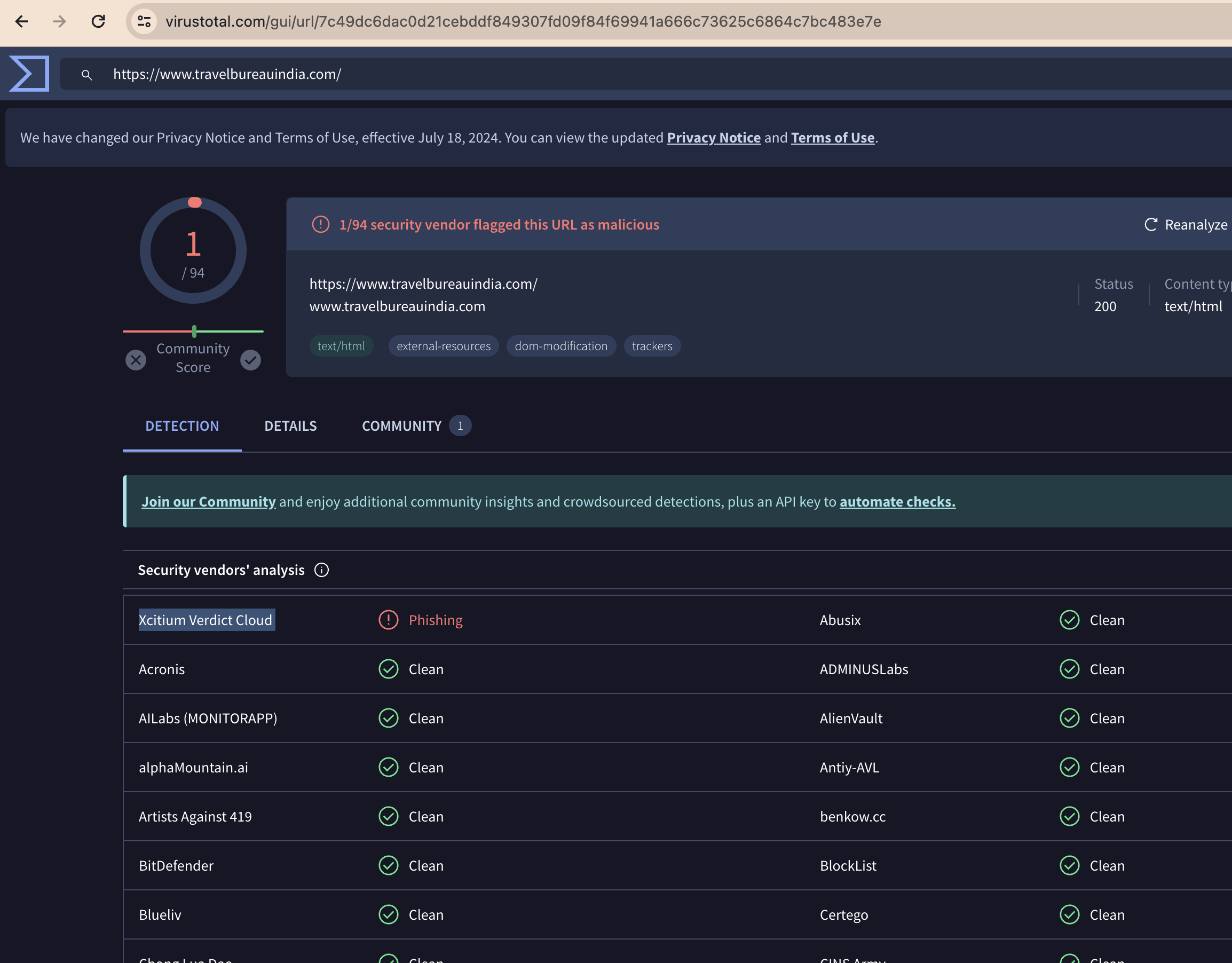 On checking found that Xcitium Verdict Cloud is marking our website as having malware and for being a proxy. Could you please advice as we pretty sure this isn’t the case?